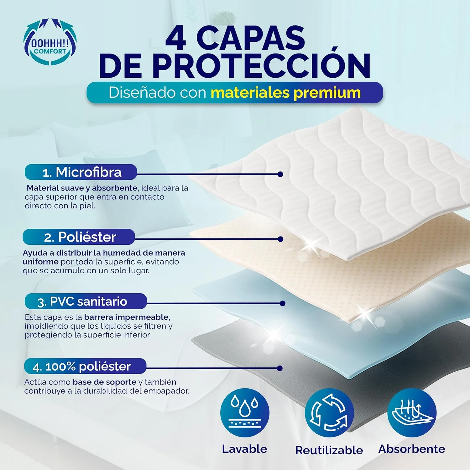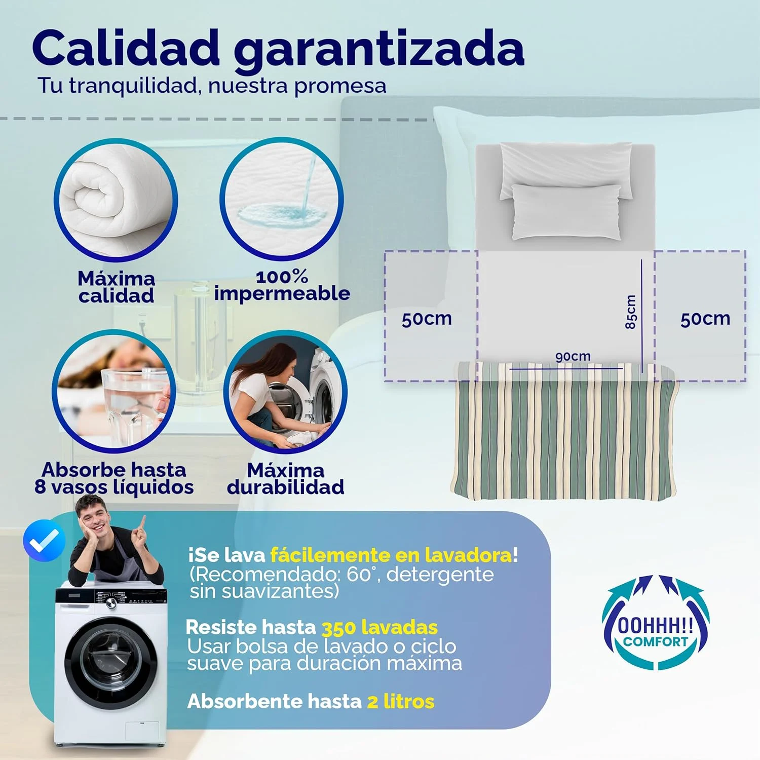Protección impermeable integral para camas, colchones, sofás y más.