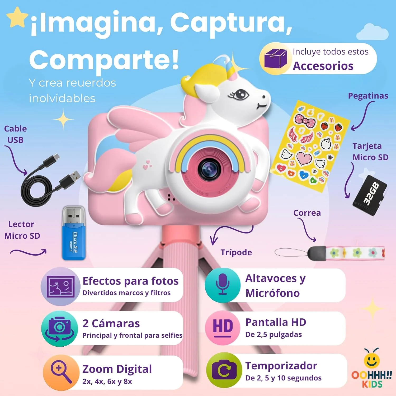 En OOHHH!! , hemos curado una selección de productos que prometen diversión, aprendizaje y momentos inolvidables. Nos enfocamos en la calidad y la originalidad, ofreciéndote desde innovadoras cámaras digitales para los más pequeños hasta artículos que añadirán un toque especial a tu vida diaria. Descubre la magia de Oohhh en cada compra.