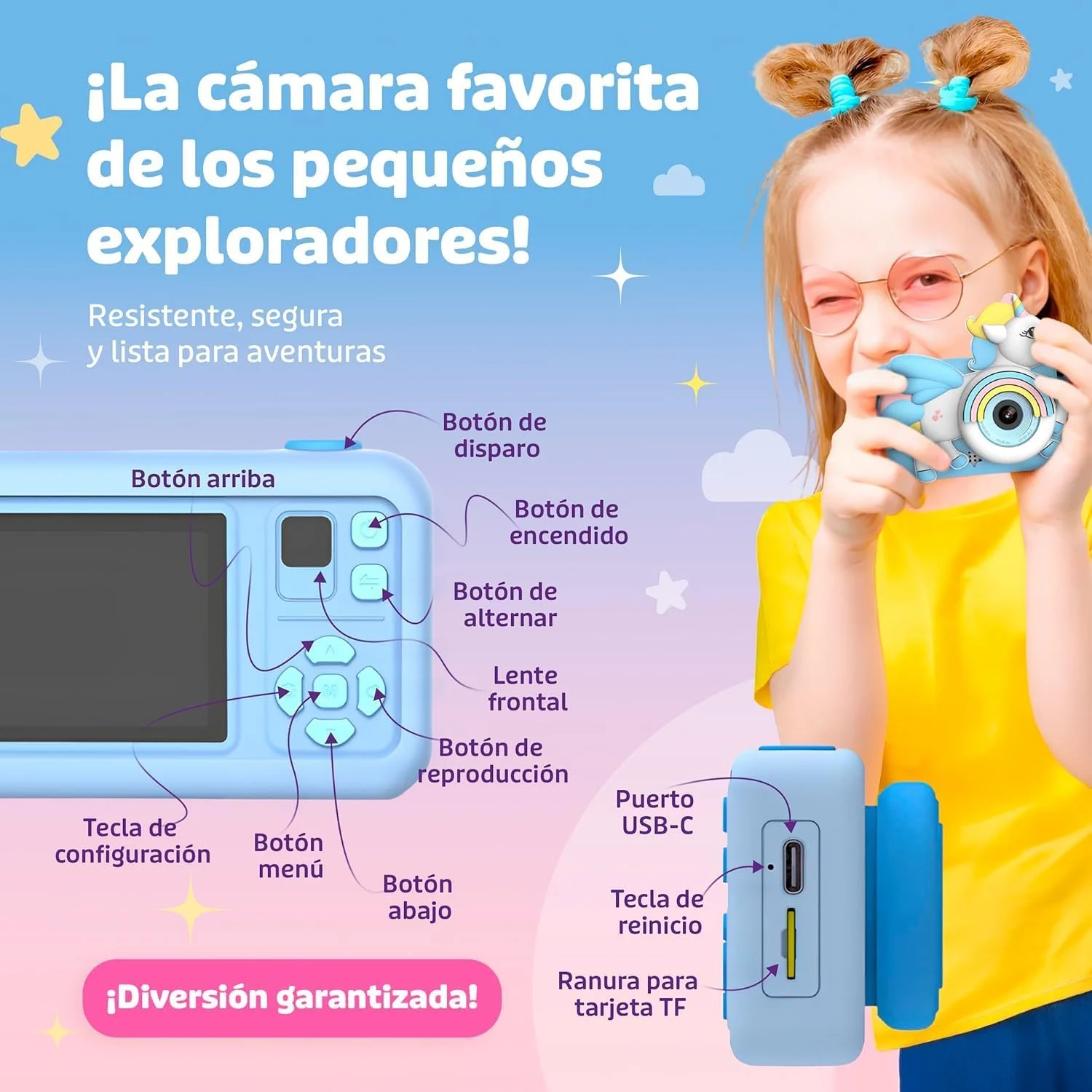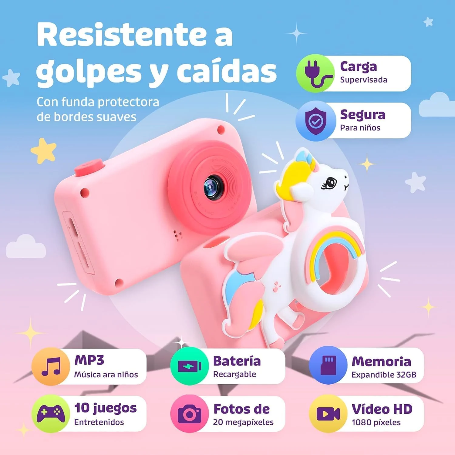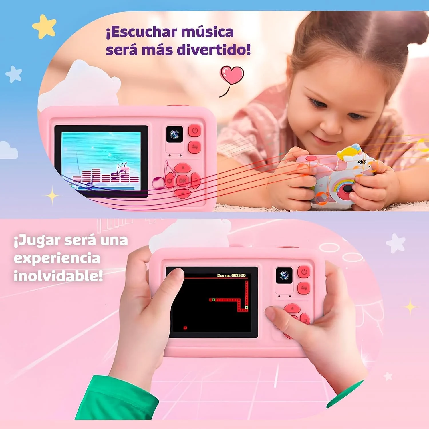 Cámara digital infantil con todo incluido para aprender, jugar y desarrollar la creatividad desde pequeños.